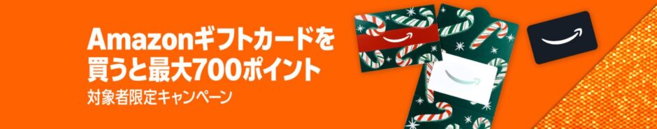 Amazonが直前に実施しているAmazonギフトカードキャンペーンは、Amazonでお得に買い物したい場合に最適なチャンスです。条件を満たすことで最大700ポイント(実質700円分)を獲得するため、セールと併用すると割引効果がさらにアップします。